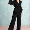 Black Peplum Wrap Top And Trousers Co-ord Set